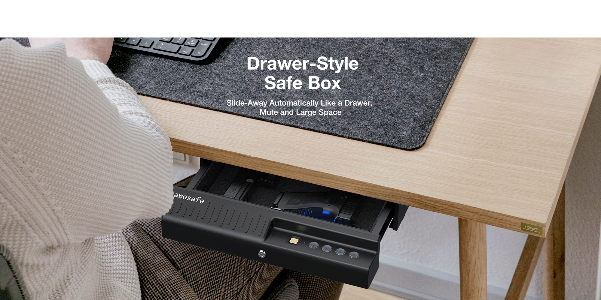 awesafe Drawer-Style Gun Safe with Biometric Fingerprint Quick Access, Slide-Away Handgun Safe for Two Pistols